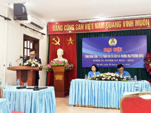 Tại Đại hội ông Nguyễn Đức Thuận – Chủ tịch công đoàn Công ty CP Vận tải biển và Thương mại Phương Đông nhiệm kỳ 2025 – 2030 báo cáo hoạt động Công đoàn Công ty nhiệm kỳ qua, phương hướng hoạt động nhiệm kỳ tới.